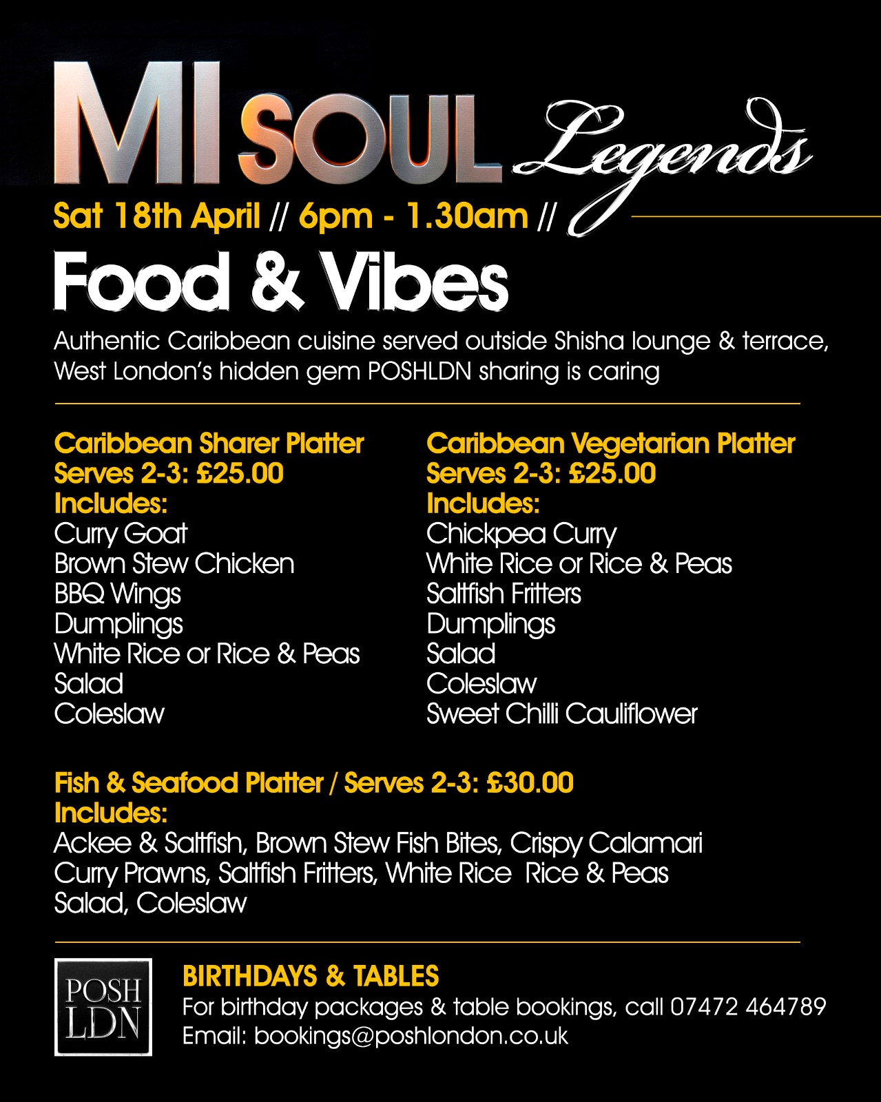 MI SOUL LEGENDS โ Live at POSHLDN A legendary night of Soul, Disco, Funk, House, Club Classics & 90s RNB featuring iconic MiโSoul DJs and special guests. Food, vibes, shisha, and pure West Londo...