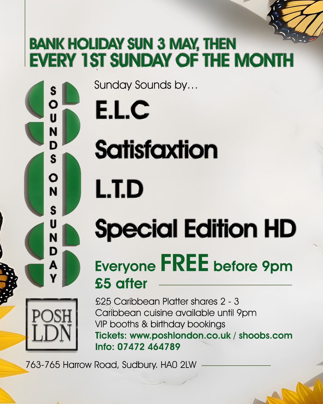 ✨ SOUNDS ON SUNDAY THE NEW MONTHLY VIBE ✨ 🎶 Studio Express | Fifth Avenue | Satisfaxtion | L.T.D | Special Edition HD 📍 POSH LDN, 763–765 Harrow Road, Sudbury, HA0 2LW 🌴 Your new Sunday ritual...